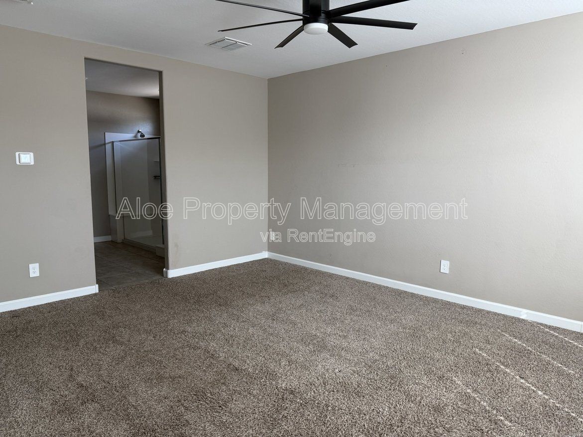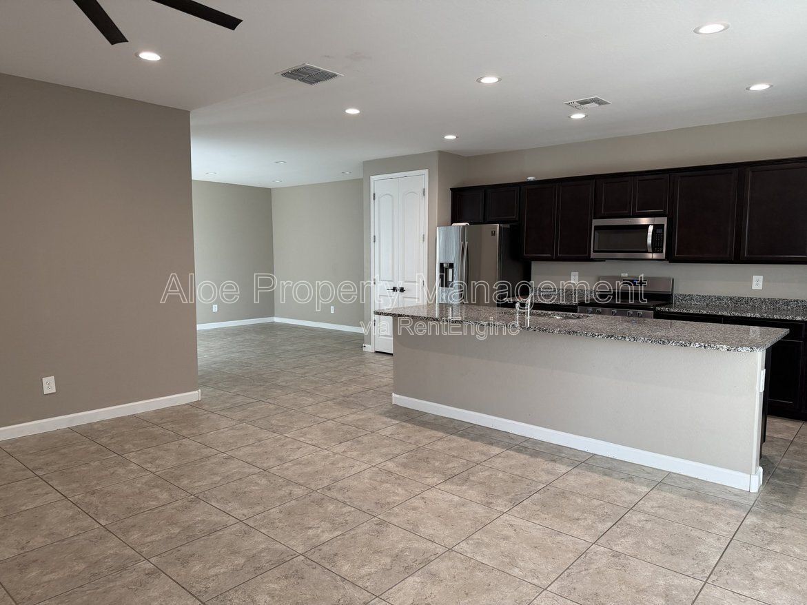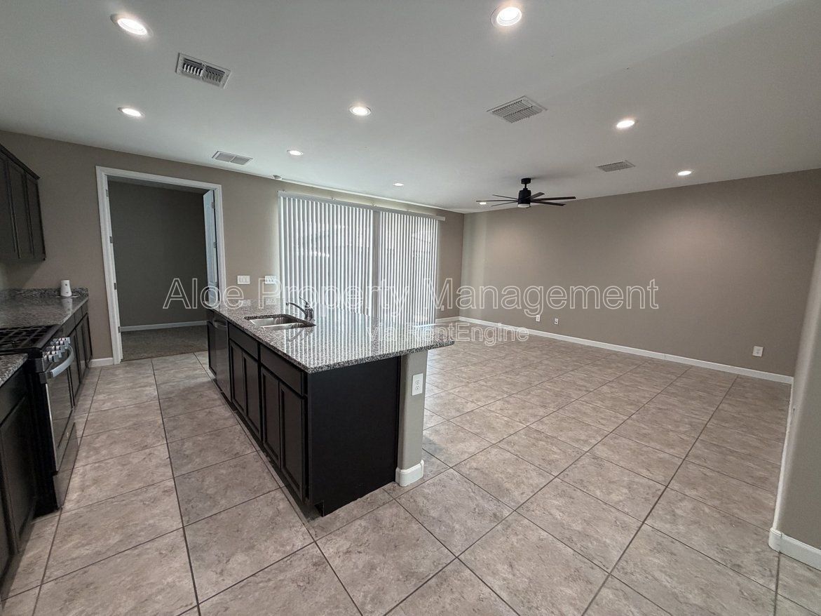 Spacious newer built home ready to move in! Primary bedroom has extended entryway, huge walk in closet and laundry room access from closet. Large eat in kitchen features Granite counters, expresso cabinets, gas stove and all appliances included. Great room off kitchen, ceiling fans in all rooms and oversized slider to patio. House features 2 patios, one on the side of the house as well as the back. Rancho Mirage community offers a variety of amenities for its residents, including parks with playgrounds, pickleball and basketball courts, walking/jogging trails, and a community lake with a park. Other features include community pavilions with BBQ grills and fire pits.